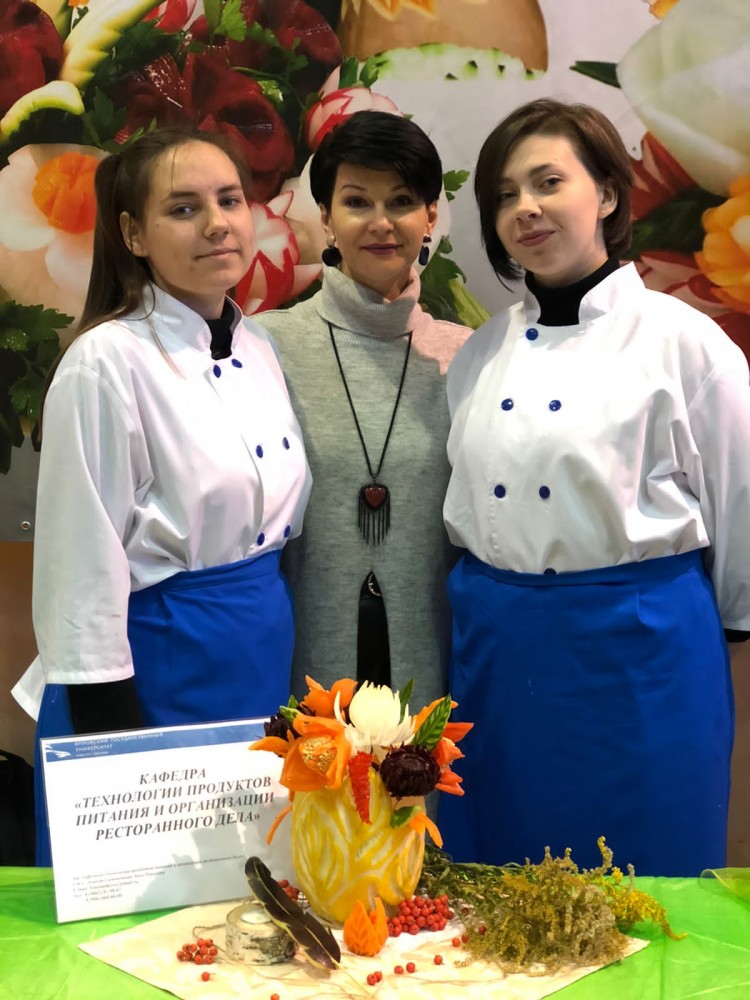 Студенты направления подготовки 19.03.04 и 19.04.04 Технология продукции и организация общественного питания Улитенкова Виктория (гр. 11-ТПм) и Кирюхина Татьяна (гр. 81-ТП) под руководством доцента Глебовой Н.В. провели обучающий мастер-класс «Русская кухня от времен Бунина до молекулярной кухни».