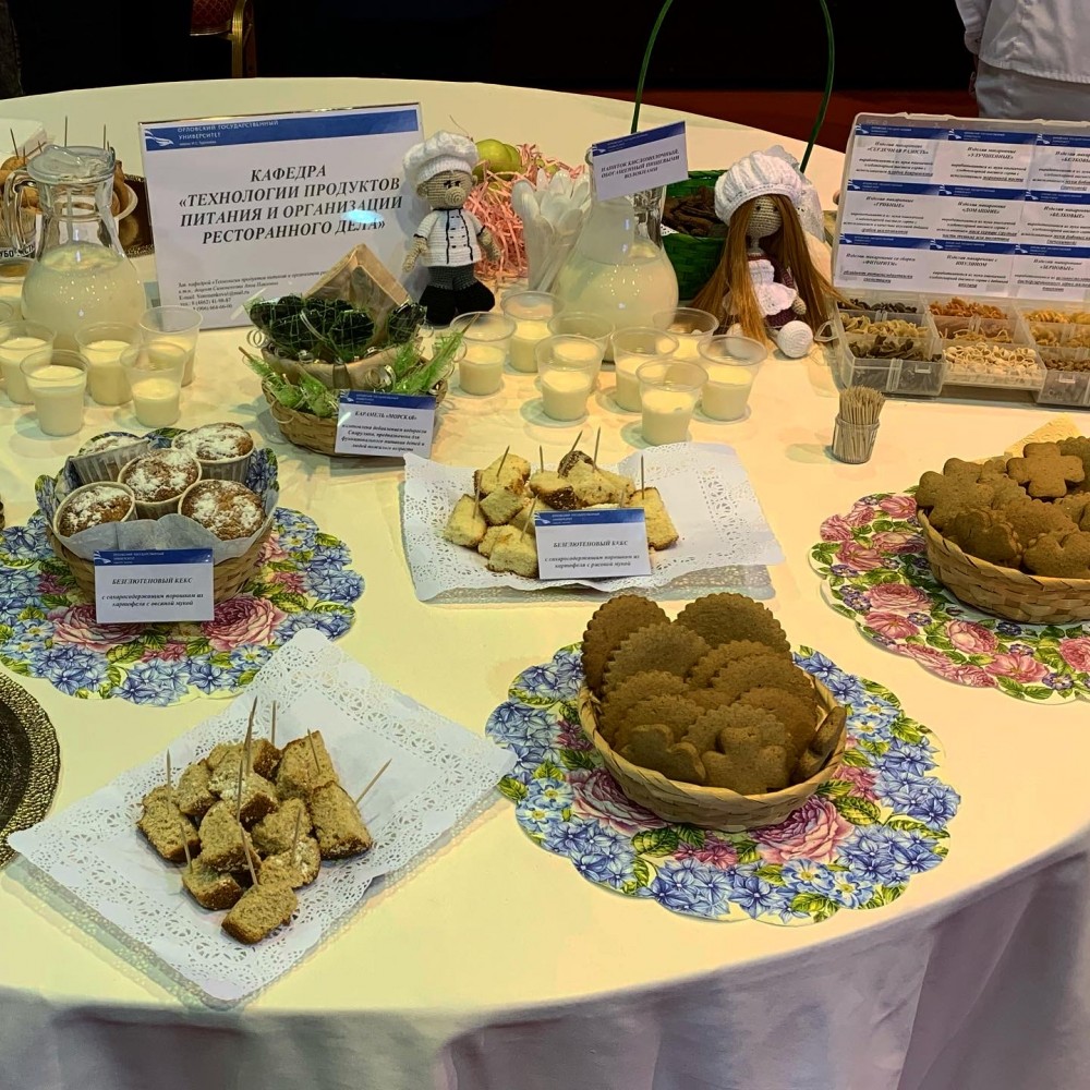 В конкурсе кулинарного искусства «Выбираем гастрономический бренд Орловской области» в номинации «Десерт, выпечка» в рамках литературно-кулинарного фестиваля «Тургеневский бережок» студенты направления 19.03.02 "Продукты питания растительного происхождения" Кулешова А. и Юрков М. представили леденцовую карамель с черной редькой, признанную победителем. Также студентка группы 11-ПР Баширова Ю.Б. выполнила для конкурса "кокурку", украшенную в стиле "орловский спис" и творожный десерт с яблоками.
