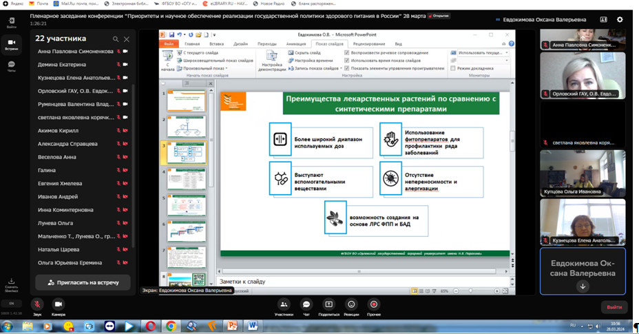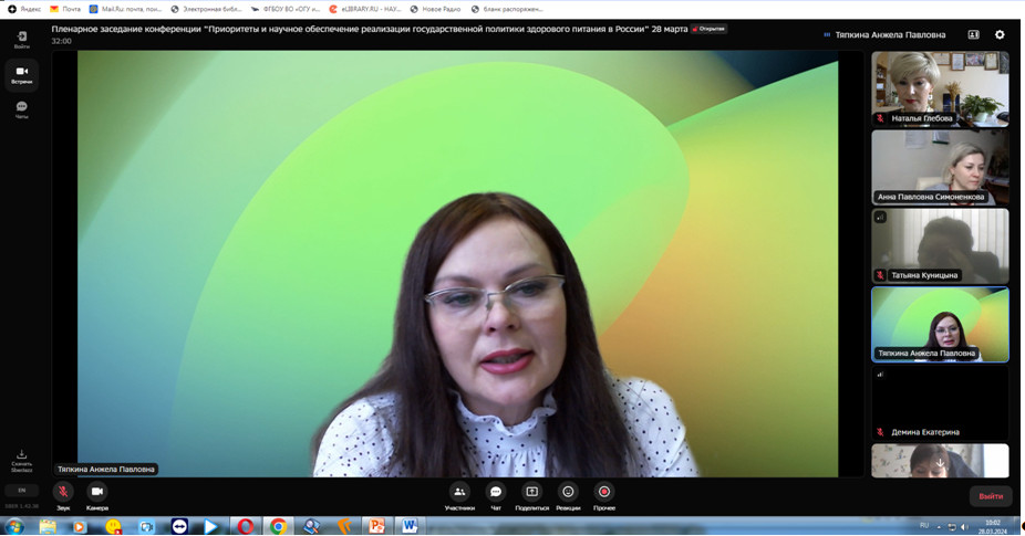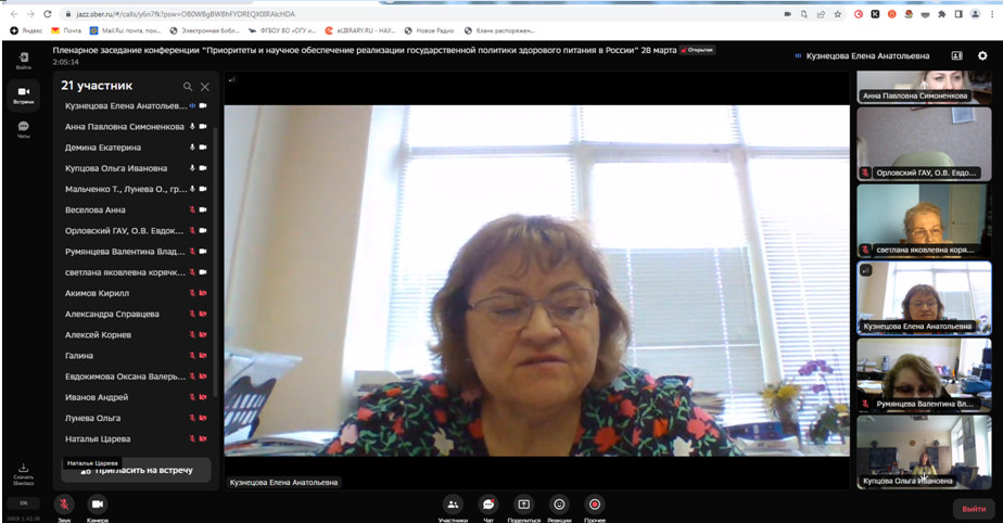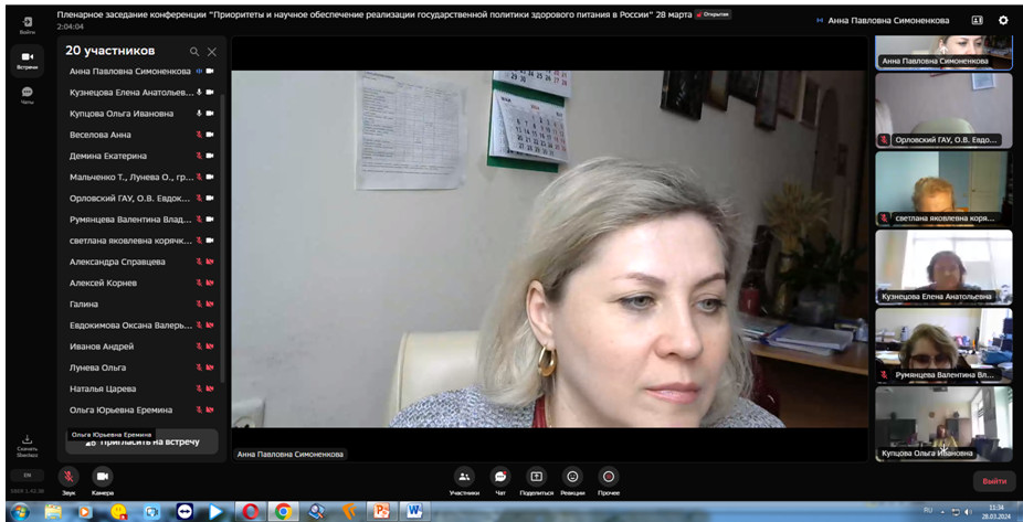 На пленарном заседании с вступительным словом к участникам конференции обратилась директор института естественных наук и биотехнологии Тяпкина А. П., а также заведующий кафедрой технологии продуктов питания и организации ресторанного дела Симоненкова А.П.