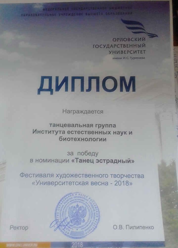 Был получен диплом за победу в номинации "Танец эстрадный" и диплом за общекомандное 3 место.