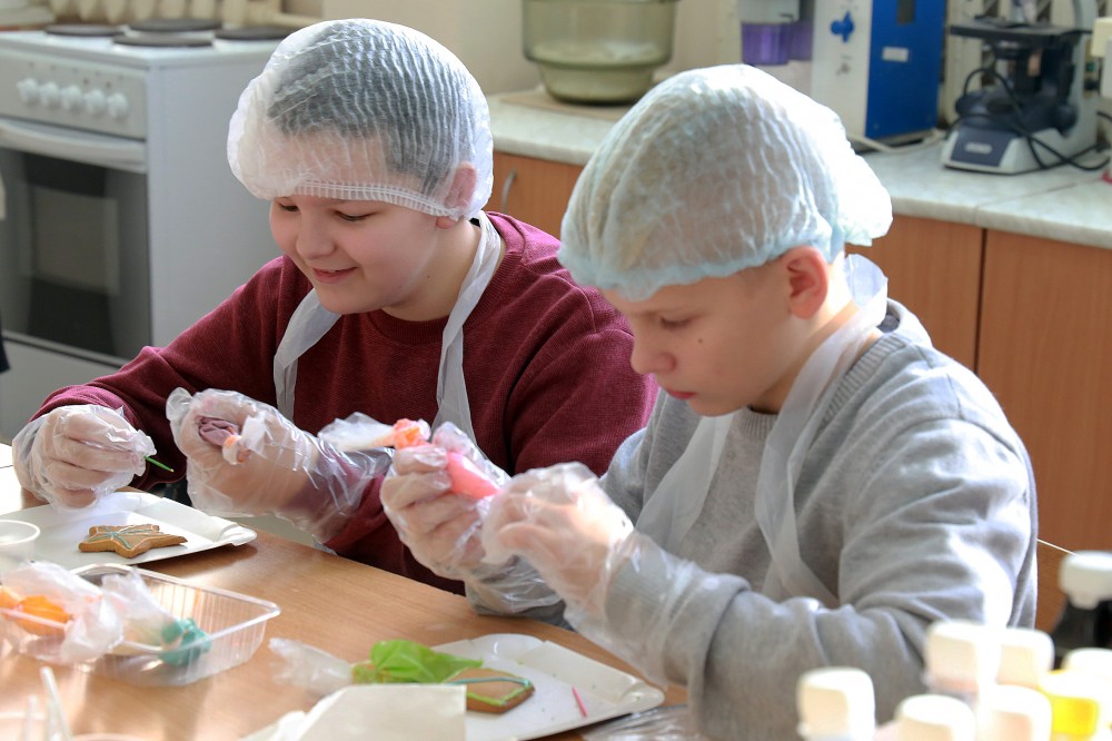 Мастер-класс по росписи имбирного печенья «Химия вкуса и цвета» проводился для школьников 7-8 классов. Участники мероприятия ознакомились с особенностями применения красителей и ароматизаторов в технологии пищевых продуктов.