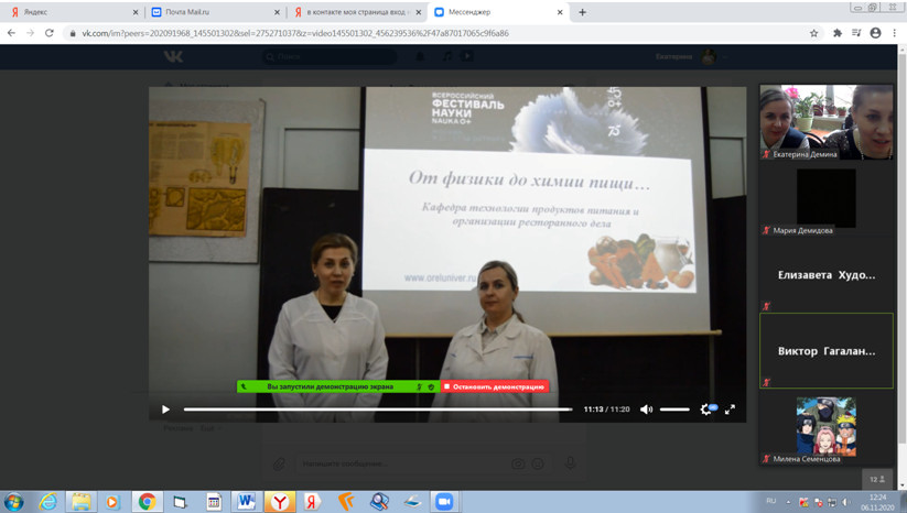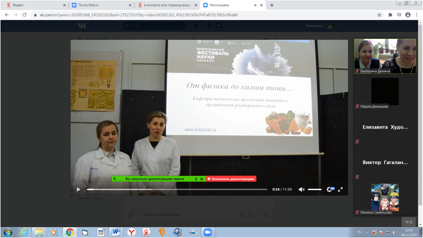 6.11.2020 в онлайн-формате на платформе ZOOM состоялся мастер-класс "От физики до химии пищи", который подготовили доценты кафедры Симоненкова А.П., Демина Е.Н., Лунева О.Н.