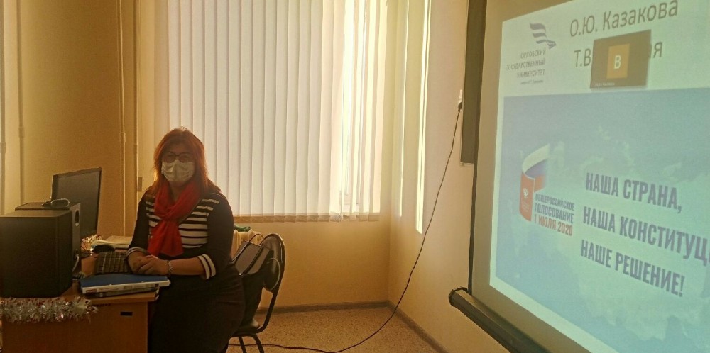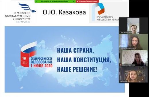 Ольга Юрьевна пригласила учеников обсудить наиболее важные поправки в Конституцию 2020-го года, касающиеся каждого из нас – о социальных гарантиях, медицинском обслуживании, непрерывном образовании, кибербезопасности, экологии, защите языка и национальной культуры. Особое внимание было уделено т.н. «исторической» статье 67, которая впервые вводит в Основной закон запрет призывов к отчуждению территории, обязует государство и граждан чтить память защитников отечества и защищать историческую правду. Наиболее активное участие в обсуждении принимали ученики 10 класса технологического профиля Сергей Поляков, Сергей Лукин, Анастасия Подыман, Федор Данилевич.