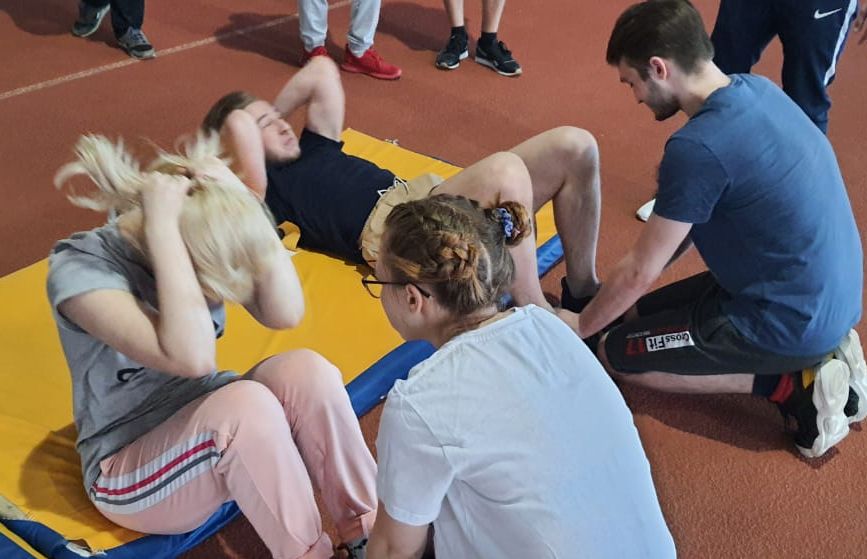 Гимназисты показали свою силу и выносливость в нормативах поднимание туловища из положения лёжа на спине, прыжки в длину с места, челночный бег 3х10 м, наклон вперед из положения стоя с прямыми ногами. Многим удалось показать результат, соответствующий золотому знаку.