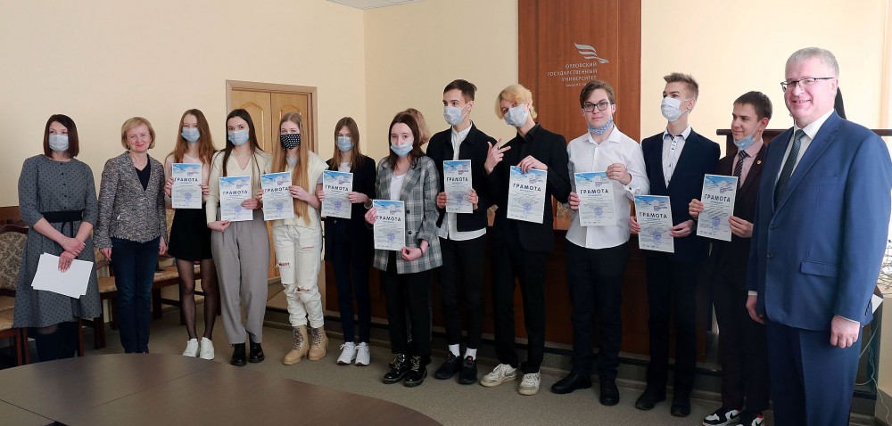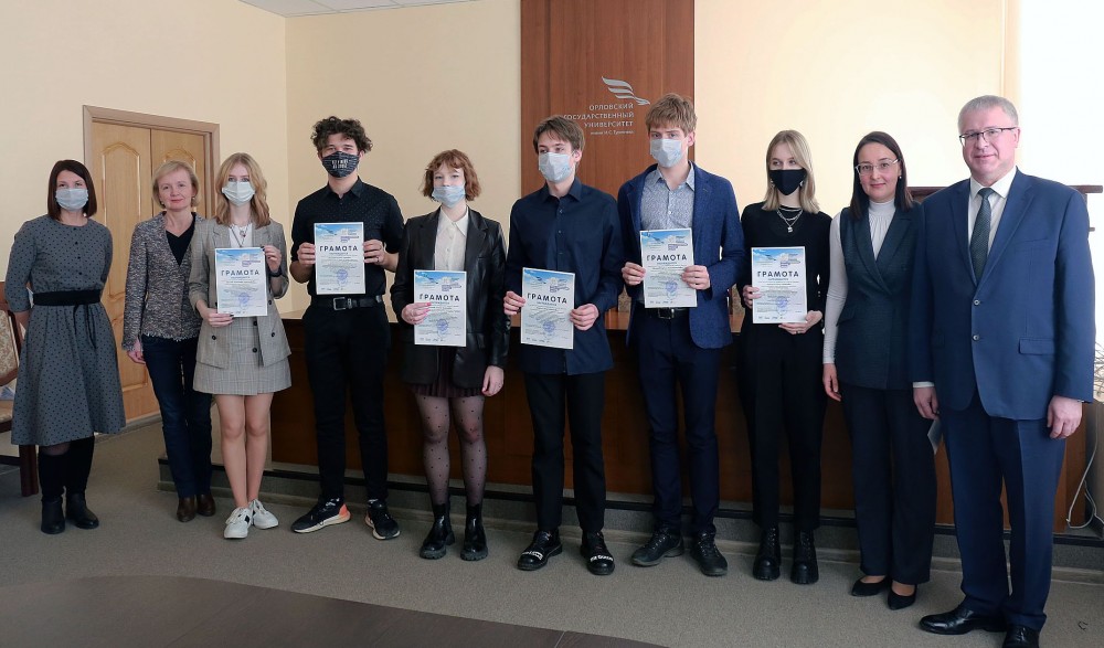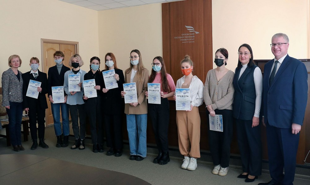 17 марта 2022 г. ректор университета Александр Федотов и проректор по учебной деятельности Елена Алексеева вручили грамоты победителям и призёрам Конкурса научно-исследовательских и проектных работ Х Всероссийской молодёжной научно-практической конференции ОГУ им. И. С. Тургенева «МИФ-2022».