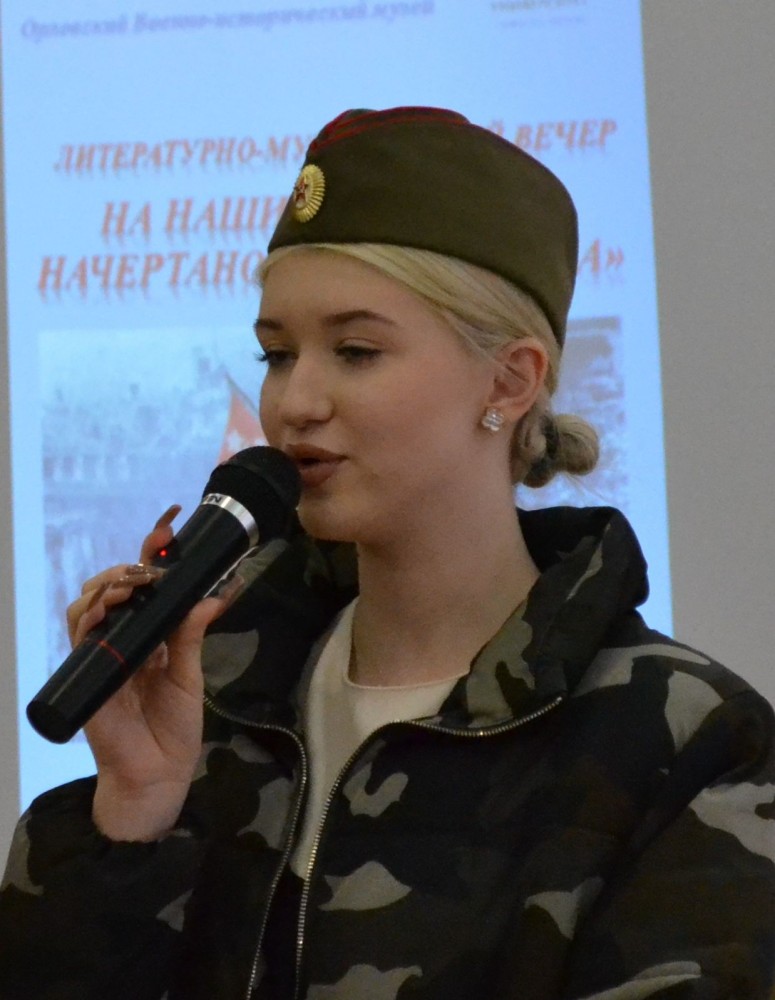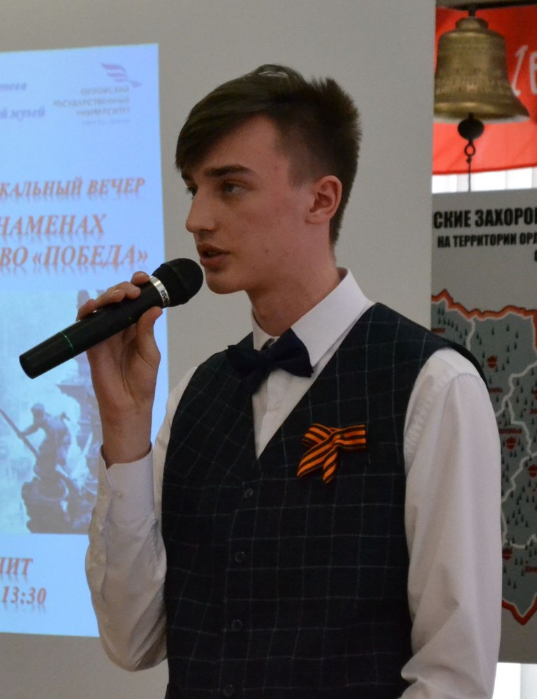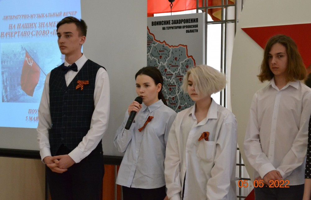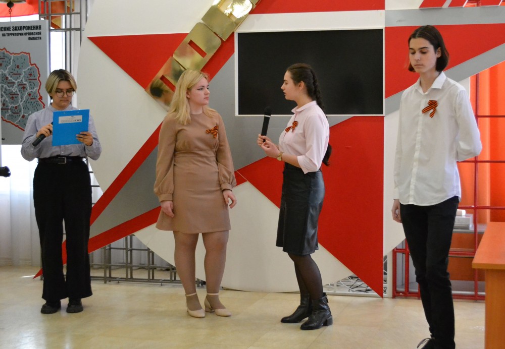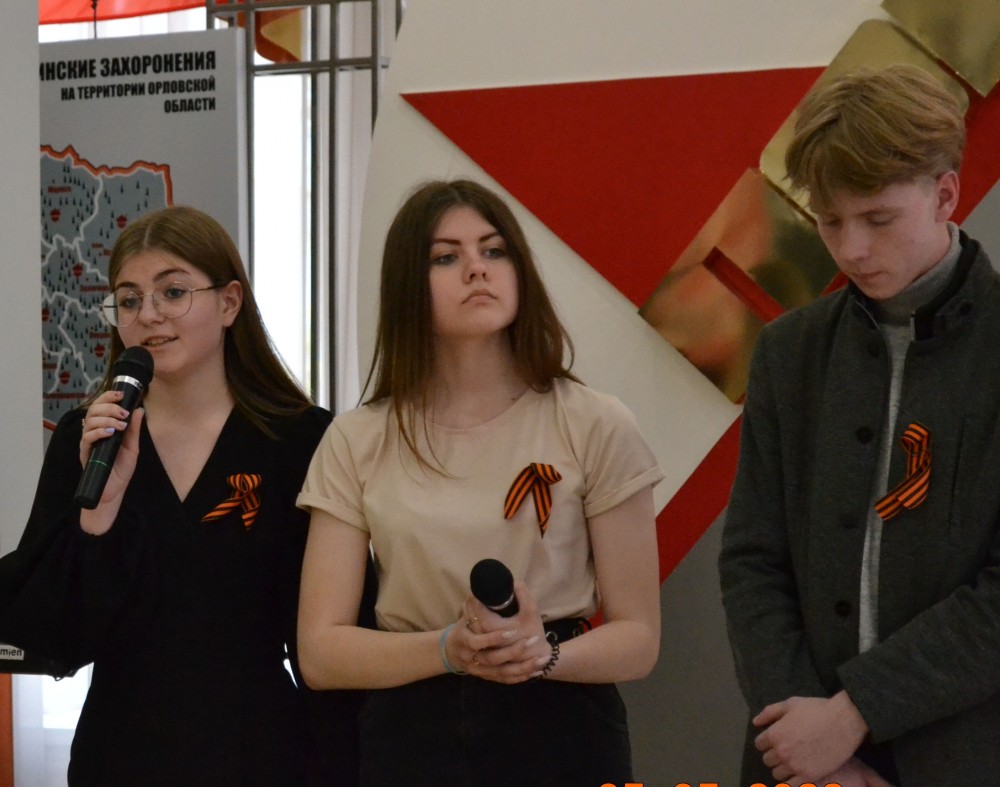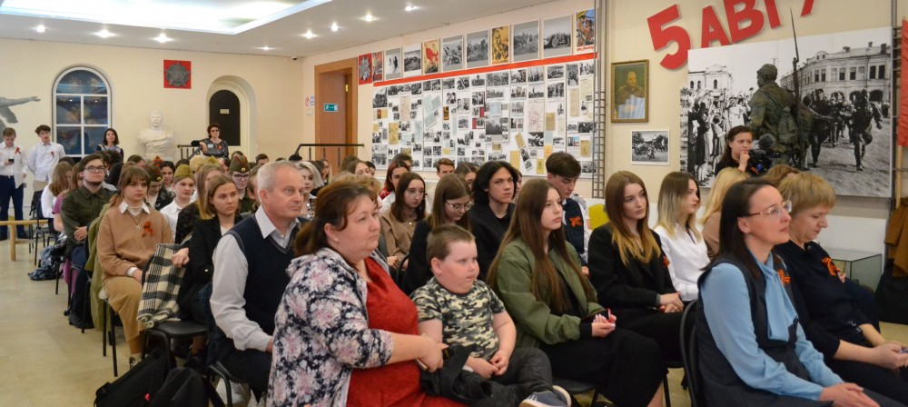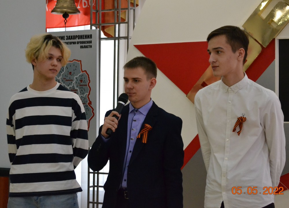 В преддверии 77 годовщины Победы в Великой Отечественной войне учащиеся и учителя Гимназии №1 ОГУ имени И.С. Тургенева собрались в Военно-историческом музее, чтобы отдать долг памяти нашим предкам, которые одержали победу и благодаря которым мы живём под мирным небом. Эта война не обошла стороной ни одну семью и у каждого из нас есть свой личный герой, которому хочется сказать спасибо за его доблесть, честь и самопожертвование. Пред лицом опасности, весь народ от мала до велика стал стеной, грудью закрыв Родину от врага. Сегодня, говоря спасибо им, мы вспоминаем каждого, кто сражался на фронте и трудился в тылу, каждого, кто терпеливо ждал своих героев дома, верил и надеялся на скорейшую победу. Наша память о защитниках будет вечна, наша благодарность будет передаваться из поколения в поколение, уроки той войны мы пронесём через века.