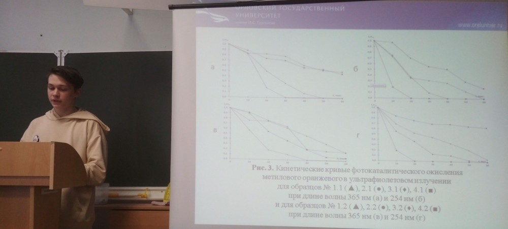 Не менее интересными получились проекты и у учащихся естественнонаучного профиля. Гимназисты изучали естественный иммунитет и вакцинацию в борьбе с COVID-19, эколого-биологическую характеристику малако-фауны реки Оки на территории Орловской области, снежный покров как естественный накопитель токсикантов в условиях города Орла, особенности формирования детского здоровья на территории Орловской области, возможность каталитической окислительно-деструктивной очистки вод различной природы от некоторых органических загрязнителей с использованием двумерных наноструктур на основе алюмосиликатов, воздействие сотовой связи на состояние эпителиальных клеток слизистой оболочки рта у школьников, влияние электромагнитного излучения компьютера на состояние хроматина в ядрах эпителиоцитов школьников, мирмекофауну парка «Разградский» города Орла, ядовитые растения Орловской области и их опасность для человека.