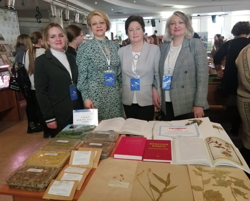 Один из стендов ОГУ имени И. С. Тургенева был посвящен настоящей достопримечательности нашего университета – гербарию имени В. Н. Хитрово. Некоторым его образцам, представленным на выставке, уже более 170 лет. В научной деятельности гербария участвуют и обучающиеся Гимназии №1 ОГУ имени И.С. Тургенева.