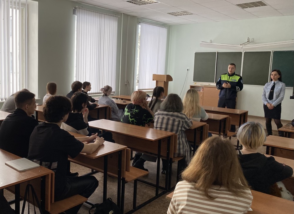 Старший инспектор лейтенант полиции Прокофьев Николай Валерьевич и инспектор старший лейтенант полиции Портных Софья Николаевна рассказали старшеклассникам о дорожной обстановке на территории города, привели статистические данные о дорожно-транспортных происшествиях за первые два месяца 2023 года. Ребята посмотрели мотивирующий фильм о причинах и последствиях дорожно-транспортных происшествий с комментариями специалистов различных ведомств.