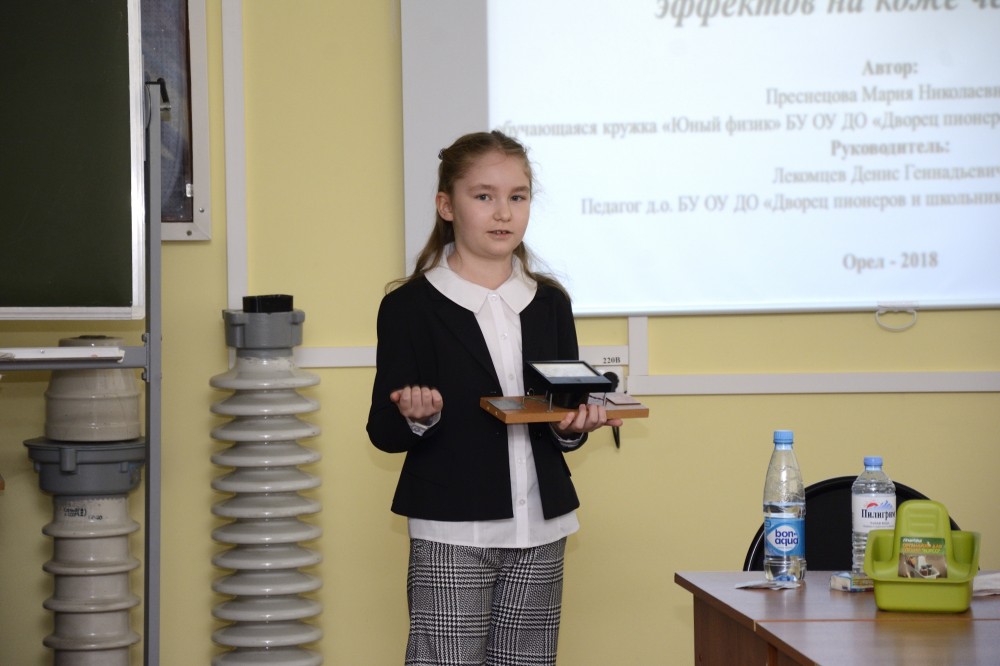 Учащиеся предуниверсария ОГУ им. И.С. Тургенева и кружка "Юный физик" Дворца пионеров и школьников им. Ю.А. Гагарина Мария Преснецова и Арсений Цыбаров приняли участие в конкурсе в рамках проведения Форума «ЭНЕРГООБЕСПЕЧЕНИЕ И ЭНЕРГОСБЕРЕЖЕНИЕ-2018», приуроченного к профессиональному празднику «День энергетика» и 98-й годовщине подписания Плана ГОЭЛРО.