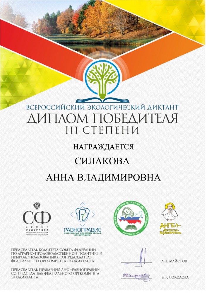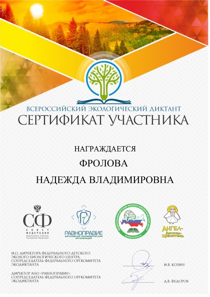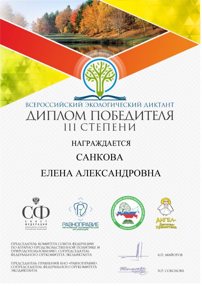 Организаторы Экодиктанта: Комитет Совета Федерации по аграрно-продовольственной политике и природопользованию, АНО «Равноправие», ООД «Ангел-ДетствоХранитель» и ФГБОУ ДО «Федеральный детский эколого-биологический центр».