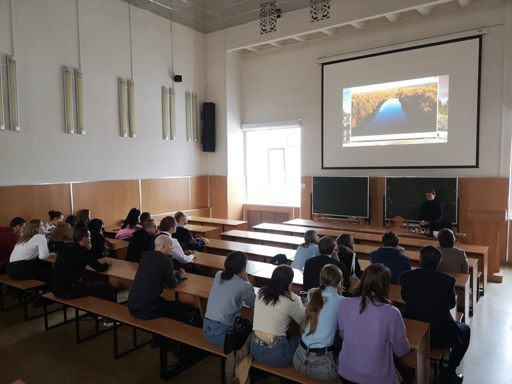 АбадоноваМ.Н. рассказала о целях и задачах создания Национального парка «Орловское полесье», о его природной уникальности, а также об основных направленияхнаучно-исследовательской работы. Одно из них – восстановление и мониторинг популяции редкого вида, эндемика русской выхухоли. Был показан документальный фильм «В погоне за реликтом. Фильм о поисках русской выхухоли».Студенты получили много интересной информации о биологии и экологии выхухоли, а также об организации и проведении исследований по поиску и сохранению этого уникального животного.