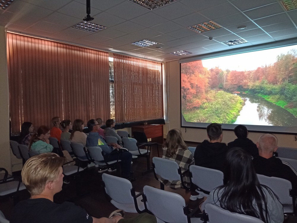 В ходе практического занятия студенты посетили визит – центр национального парка, посмотрели интерактивную экспозицию, реализованную с помощью использования различных устройств цифровой визуализации. Также для студентов был проведён показ, уже ставшего культовым, фильма «Зубры. Прошлое. Настоящее. Будущее», подготовленного в рамках грантового проекта Русского географического общества (РГО) После просмотра фильма была проведена развёрнутая ГИС – лекция, насыщенная картографическим интерактивом.