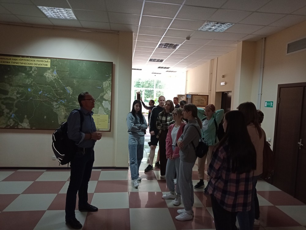 14 июня 2023 года в рамках договора о сотрудничестве с ФГБОУ ВО «Орловский государственный университет им. И.С. Тургенева» на территории ФГБУ «Национальный парк «Орловское полесье» прошли практику студенты 2-го курса института естественных наук и биотехнологии - кафедры географии, экологии и общей биологии. Практическое выездное мероприятие проводилось под руководством заведующего кафедрой к.г.н., доцента Тихого Владимира Ивановича. Цели мероприятия – получение практических навыков работы в области ГИС – картографические программы, использование различных типов графических материалов, как векторных, так и растровых; получение информации о функциональном зонировании национального парка и знакомство с проектами экологических троп в полевых условиях. Достижение поставленных целей помог осуществить ГИС - специалист национального парка «Орловское полесье» Карпачев Андрей Петрович.