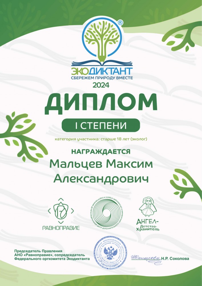 Всероссийский Экологический диктант проводился с 25 ноября по 08 декабря 2024 года в онлайн формате. В нём приняли участие более 30 студентов и преподавателей.