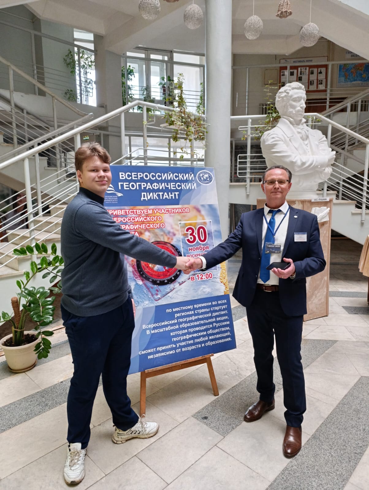 30 ноября 2025 года участие в акции приняли 300 человек: студенты, учащиеся техникумов и колледжей, учителя и школьники. В качестве почетного гостя географический диктант посетил Федеральный инспектор по Орловской области аппарата полномочного представителя Президента России в Центральном федеральном округе Алексей Королев, который является профессиональным географом и выпускником кафедры географии нашего вуза. Кроме того, на площадке географического диктанта ОГУ им. И.С. Тургенева зарегистрировался еще один почетный гость. Это – директор национального парка «Орловское полесье» Олег Пригоряну, профессиональный географ, кандидат географических наук.