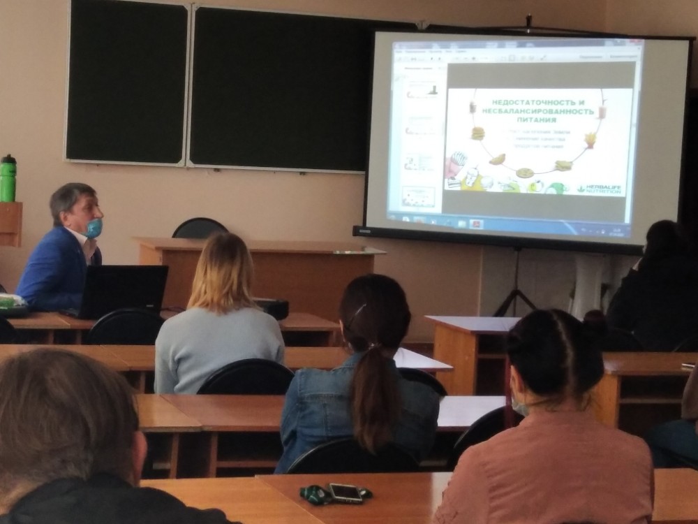 В мастер-классе принимали участие преподаватели кафедры, консультант по сбалансированному питанию Белобородов Иван Николаевич, а так же студенты института естественных наук и биотехнологии 1, 3 и 5 курсов в количестве 30 человек.