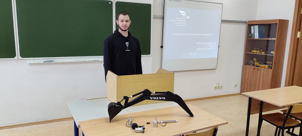 - Коротков Е., Коньков Н. с темой - "Создание действующей модели экскаватора". Модель изготавливается из пластика, путем печати деталей на 3D принтере, в качестве управления оборудованием используется пневмосистема.