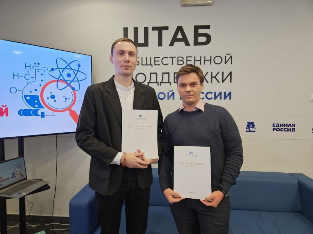 Юрий Казаков, аспирант 2 года обучения по специальности «Роботы, мехатроника и робототехнические системы» и Кирилл Настепанин, магистр 2 года обучения по специальности «Мехатроника и робототехника» были отмечены благодарственными письмами Государственной Думы РФ за участие в следующих проектах: в рамках Постановления Правительства РФ № 218 «Создание цифровой системы мониторинга, диагностики и прогнозирования состояния технического оборудования с применением технологии искусственного интеллекта на базе отечественных аппаратных и программных средств»; РНФ «Методы синтеза и предиктивного анализа гидромеханических триботронных систем с использованием машинного обучения»; в рамках проведения инициативных исследований молодыми учёными «Механизмы формирования и способы реализации статистического и динамического снижения вязкого трения в активных жидкостных опорах роторов»; проекта государственного задания на оказание услуг (выполнение работ) «Разработка конструкторских и программно-аппаратных решений управления вибрационными процессами в вертолётном транспорте, обеспечивающих формирование оптимальных компенсационных воздействий».