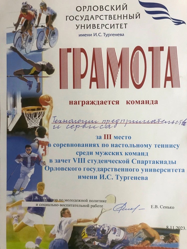 Поздравляем команду нашего факультета с 3 местом в соревнованиях по настольному теннису среди мужских команд в зачёт 8-ой студенческой Спартакиады ОГУ имени И.С. Тургенева.