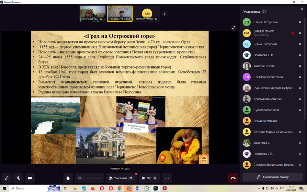 Очный тур конференции прошёл в онлайн-режиме на базе платформы Яндекс.Телемост 28 января 2025 г.
