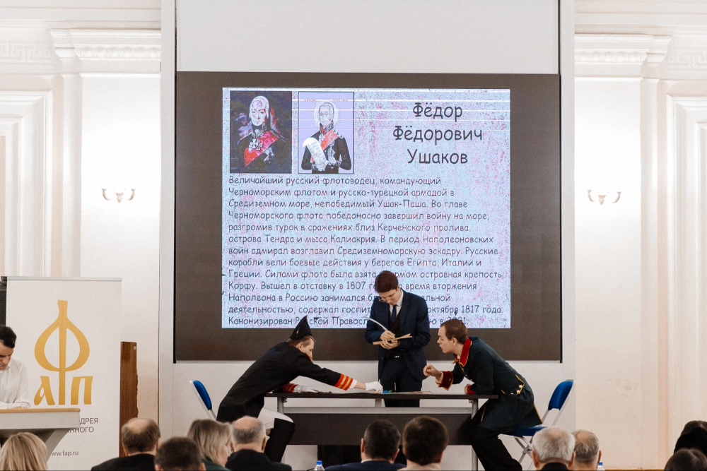 Наши студенты, успешно пройдя непростой четырехэтапный отборочный тур, через научную реконструкцию эпохи противостояния России и Франции в конце XIX века и образа генерала Бонапарта, показали роль России и ее легендарного флотоводца в масштабных военных операциях на Средиземном море.