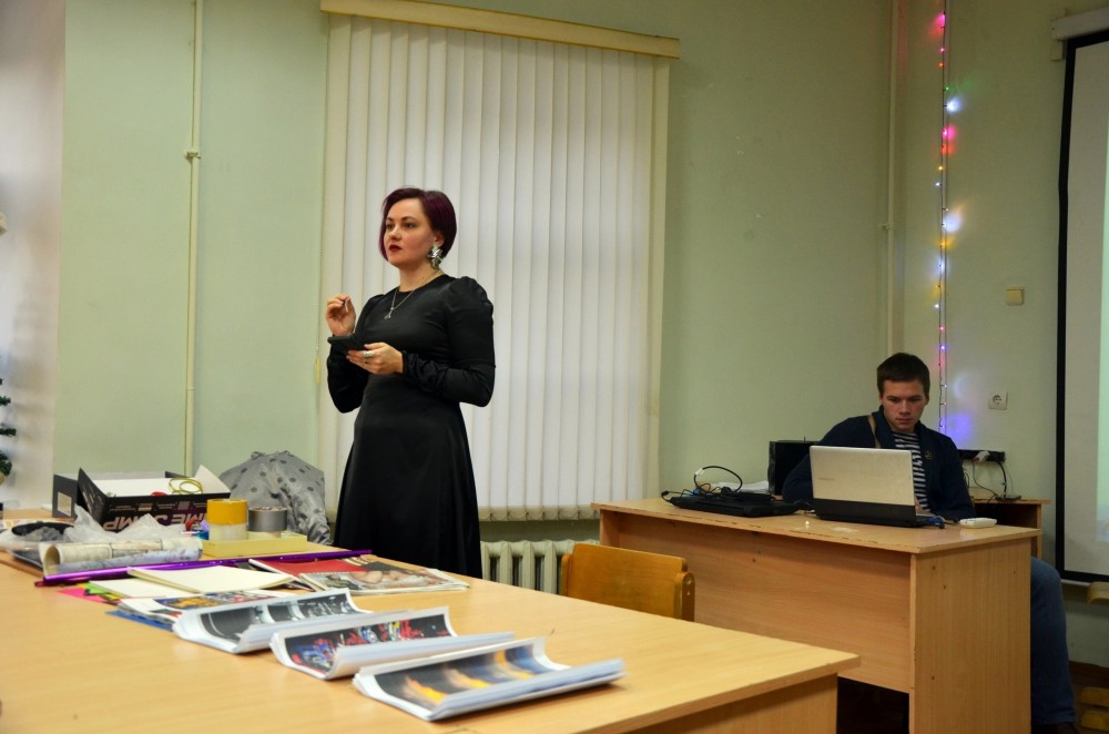 После награждения все желающие могли принять участие в мастер-классе, организованном Галиной Изотовой. Студенты попробовали себя в жанре "mixed media", создав собственные коллажи и произведения.