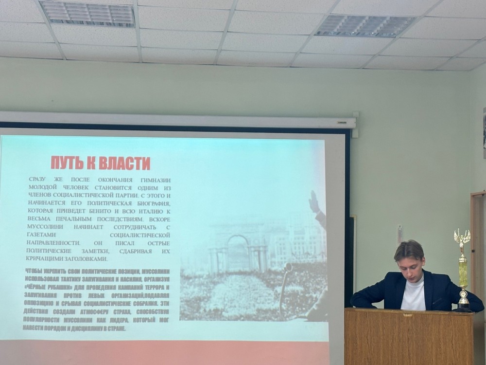 Бардина Анастасия Романовна, Захарова Валентина Андреевна. ОГУ имени И.С. Тургенева. Тема: Дуче! Взлет и падение Бенито Муссолини.