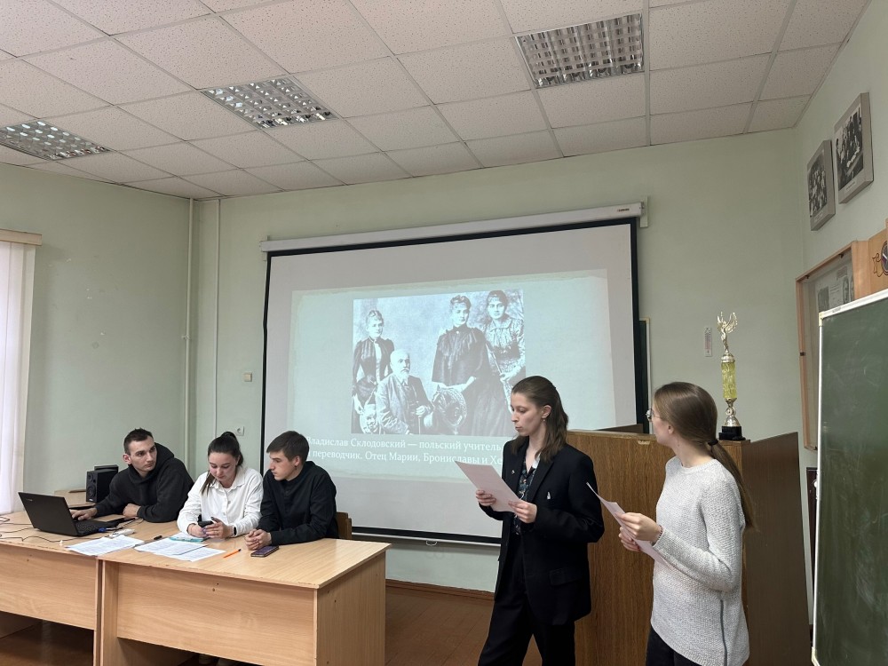Корнатовская Селена Николаевна, Шубина Дарья Александровна. Орловский государственный институт культуры. Тема: Пьер и Мария Кюри.
