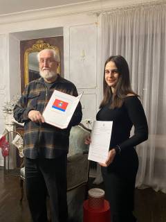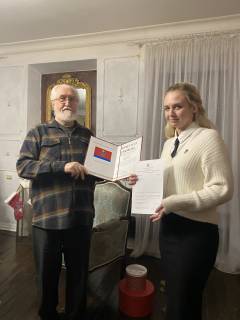 26 декабря в Орловском отделении ВООПиК прошло торжественное награждение членов САО «Параллель». Командира отряда Белозерцеву Полину и рядовую Ступак Валентину наградили почётными грамотами за добросовестный труд и сохранение наследия Орловской археологии и истории. Почетный председатель Орловского отделения ВООПиК Виктор Ливцов выразил благодарность членам отряда, сказал напутственные слова и пожелал успехов в дальнейших работах в археологии и изучении истории своей страны.