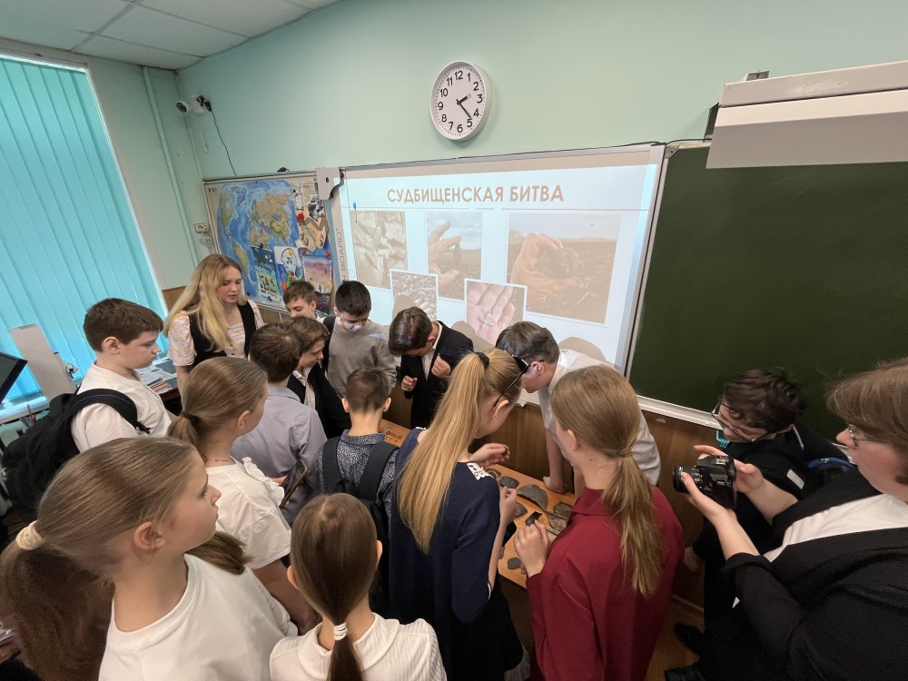 На сей раз перед студентами-археологами радушно открыл свои двери Орловский лицей №1. Ребята познакомились с интересными страницами орловской археологии, краеведческим материалом, историей легендарного Судбищенского побоища, а также буквально прикоснулись к уникальной истории родного края.