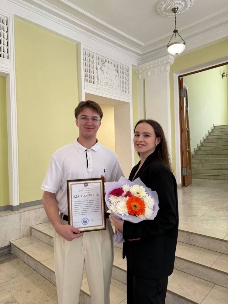 Студенты 5 курса исторического факультета ОГУ имени И.С. Тургенева Амелин Иван и Козанова Ольга стали победителями в номинации «Лучшие видеоматериалы» и были отмечены благодарностями Губернатора Орловской области.