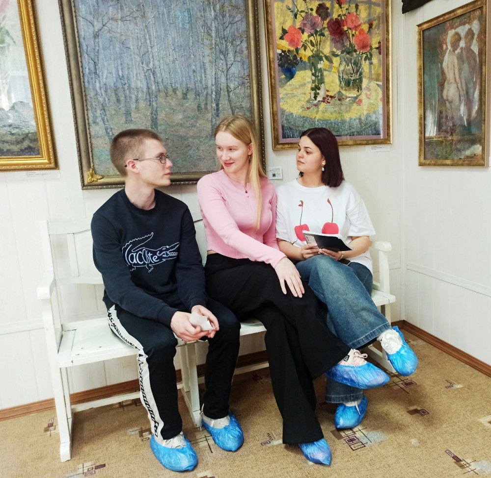 В марте студенты группы 11СКД в интерактивной творческой программе «Весенние краски» в Картинной галерее А.И. Курнакова под руководством заведующего галереей Ивана Николаевича Булохова учились писать картины.