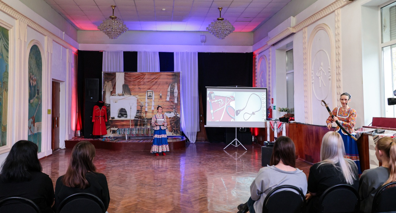 Студенты 1-го и 2-го курсов Исторического факультета ОГУ имени И.С. Тургенева посетили увлекательный этно-урок «Казачья станица». Мероприятие состоялось в концертном зале Орловского областного центра народного творчества. Участники мероприятия погрузились в атмосферу казачьей станицы, узнали о быте, культуре и обычаях казаков.