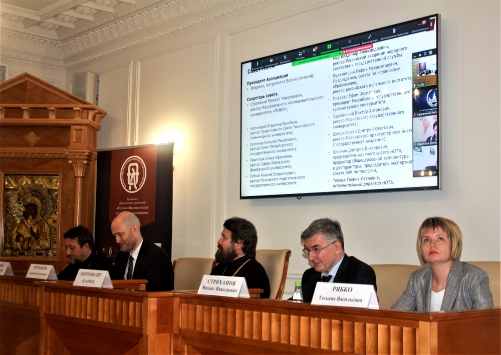 13 мая 2021 г. в Москве, в актовом зале Общецерковной аспирантуры и докторантуры им. св. Кирилла и Мефодия состоялось Общее отчетно-выборное собрание членов Научно-образовательной теологической ассоциации (НОТА), которое возглавил президент Ассоциации, председатель Отдела внешних церковных связей, ректор Общецерковной аспирантуры, председатель Межведомственной координационной группы по преподаванию теологии в вузах митрополит Волоколамский Иларион.