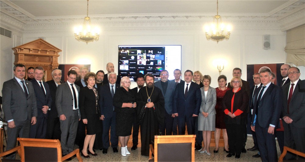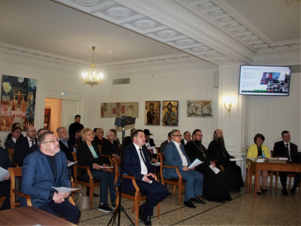 В президиуме заседания присутствовали: референт Управления Президента РФ по внутренней политике, ответственный секретарь Совета по взаимодействию с религиозными объединениями при Президенте Российской Федерации А.В. Третьяков, директор департамента государственной политики в сфере высшего образования Министерства науки и высшего образования России Т.В. Рябко, председатель Учебного комитета Русской Православной Церкви протоиерей Максим Козлов, ректор НИЯУ «МИФИ» М.Н. Стриханов.