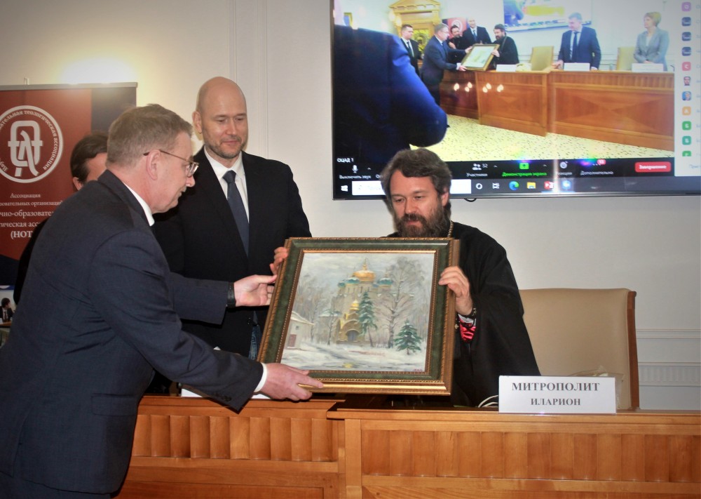 Митрополит Иларион напомнил слова Президента Российской Федерации В.В. Путина, обращенные к участникам IV Всероссийской конференции по теологии (2020): «Теология занимает важное место в системе гуманитарных знаний и призвана выполнять ответственную мировоззренческую, воспитательную миссию – содействовать сбережению духовно-нравственных ценностей и богатейшего культурного наследия народов России».