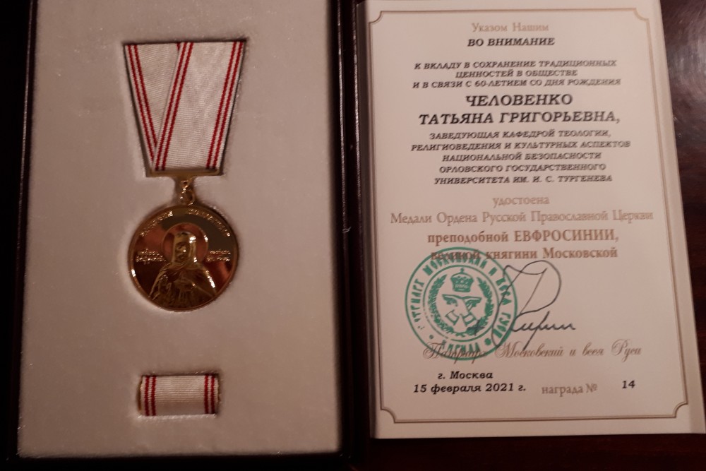 Акцентируя внимание на значимости тематики конференции, почетные гости выразили признательность организаторам за проведение форума. Вклад зав. кафедрой теологии, религиоведения и культурных аспектов национальной безопасности в сохранение традиционных ценностей в обществе был отмечен медалью Ордена Русской Православной Церкви преподобной Евфросинии, великой княгини Московской, врученной митрополитом Орловским и Болховским Тихоном, а также медалью священномученика архимандрита Сергия (Шеина) от некоммерческого партнерства «Спасское дело».