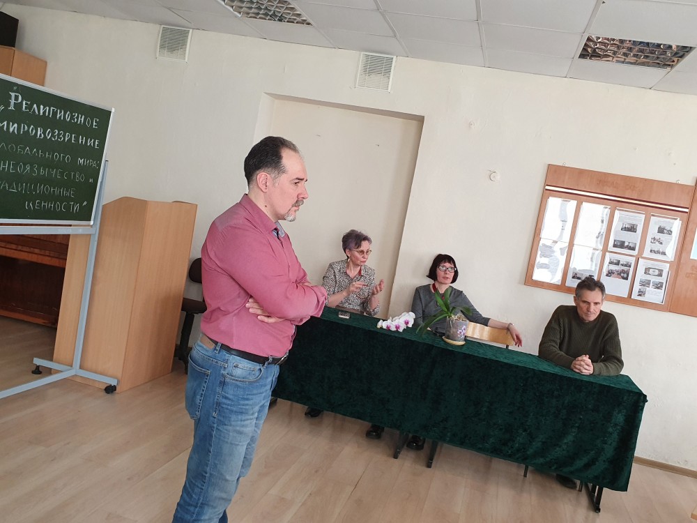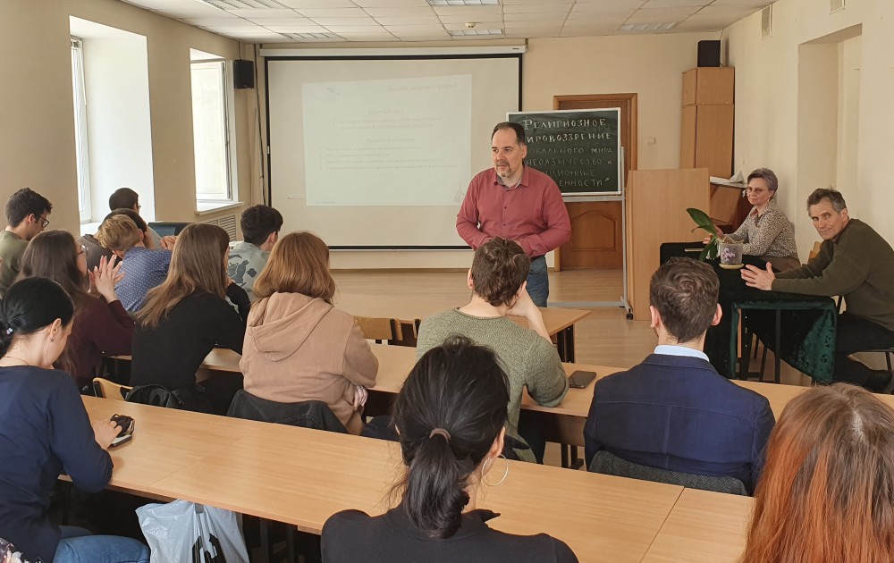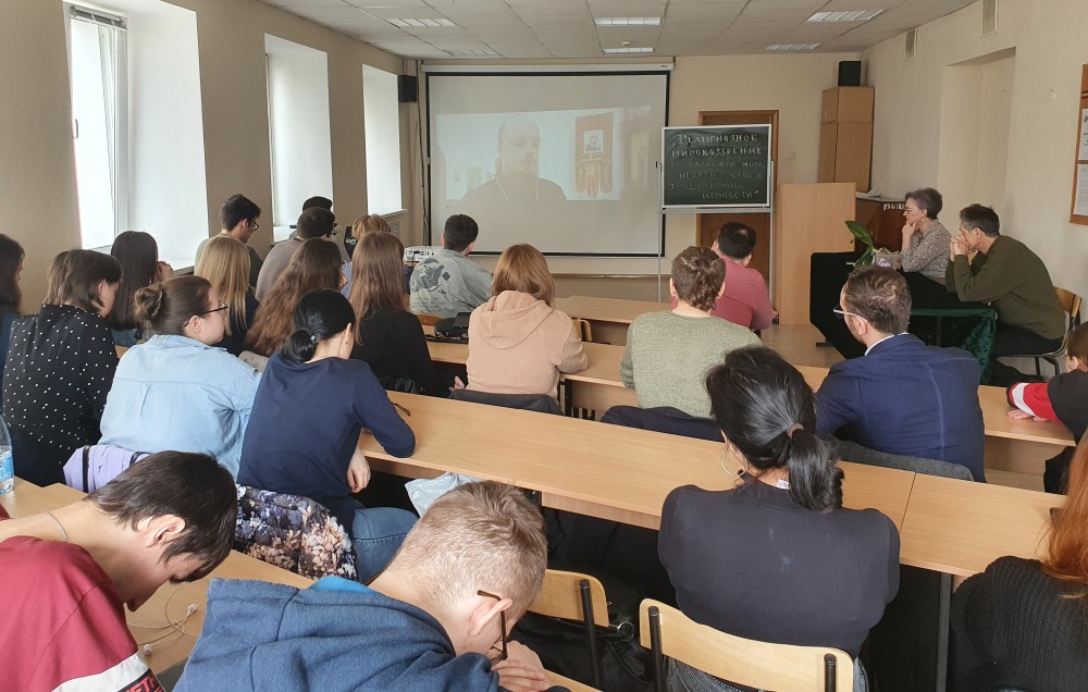 26 апреля 2022 г. дискуссионный студенческий клуб «Диалог мировоззрений» вновь собрал студентов, интересующихся мировоззрением современной молодежи. Гостями студентов-теологов стали представители Орловского государственного института культуры и искусств, обучающиеся по направлению «Народная художественная культура» во главе с доцентом Комраковым Р.В. Вопросы неоязычества, проблема двоеверия и его отражения в русских традициях и ритуалах занимают немалое место в их учебной программе, вызывая интерес у будущих руководителей этнокультурных центров и любительских театров.
