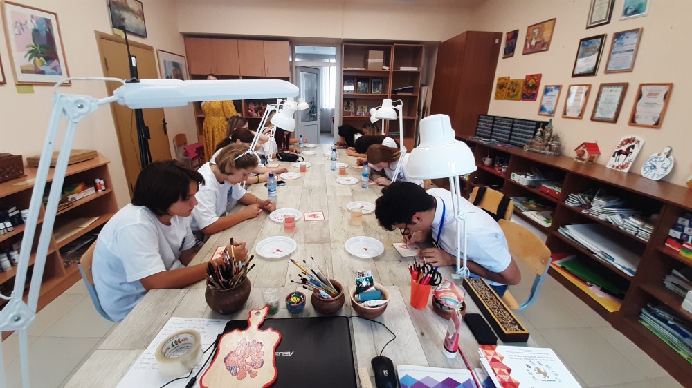 Студенты-теологи в качестве волонтеров сопровождали гостей из ЛНР и ДНР в духовно-православный центр «Вятский Посад». Участникам провели обзорную экскурсию по территории комплекса, рассказали о его истории и мероприятиях, которые здесь проводятся. Центром особого внимания стала православная артель, где ребята приняли участие в мастер-классах по традиционным русским ремеслам. Волонтеры-теологи вместе с ребятами осваивали технику набойки узора на ткань, лепили фигурки из глины, выжигали узоры по дереву и научились своими руками делать традиционную народную игрушку.