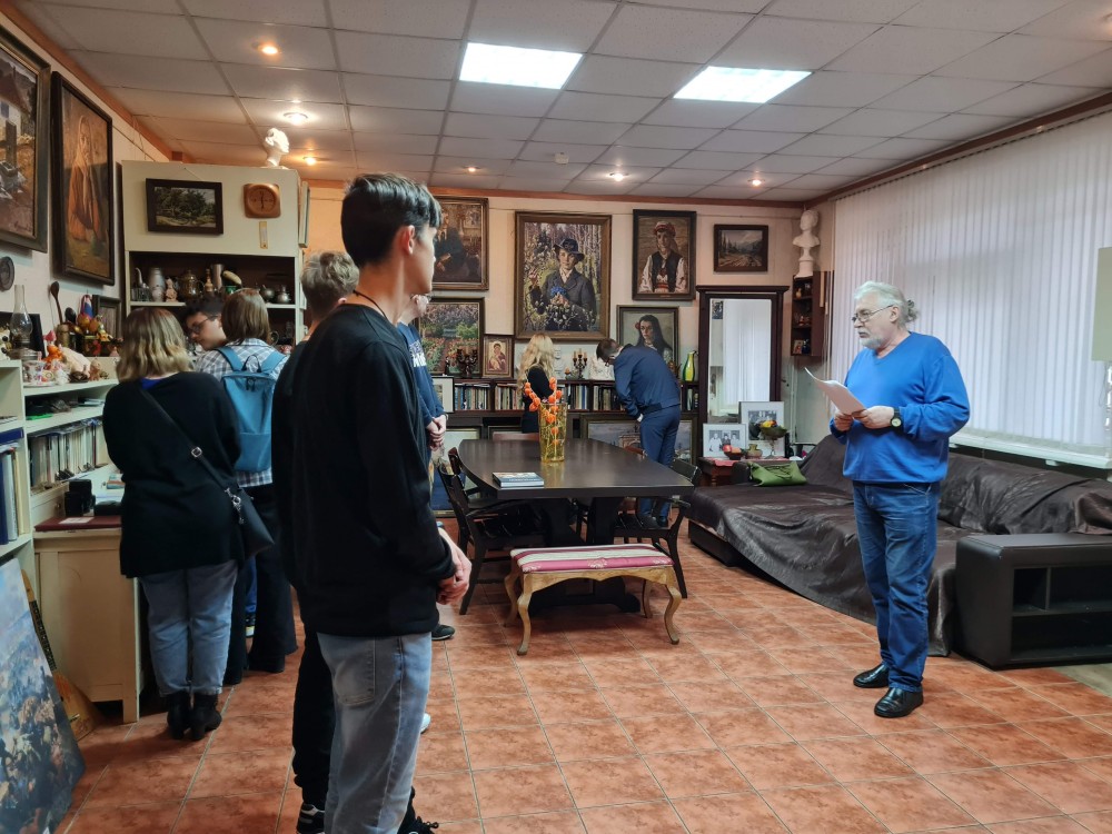 27 октября 2022 г. студенты кафедры теологии, религиоведения и культурных аспектов национальной безопасности посетили мемориальную мастерскую художника Дышленко Г.В. Экскурсию провел сын художника и по совместительству хранитель мастерской Виктор Георгиевич Дышленко.