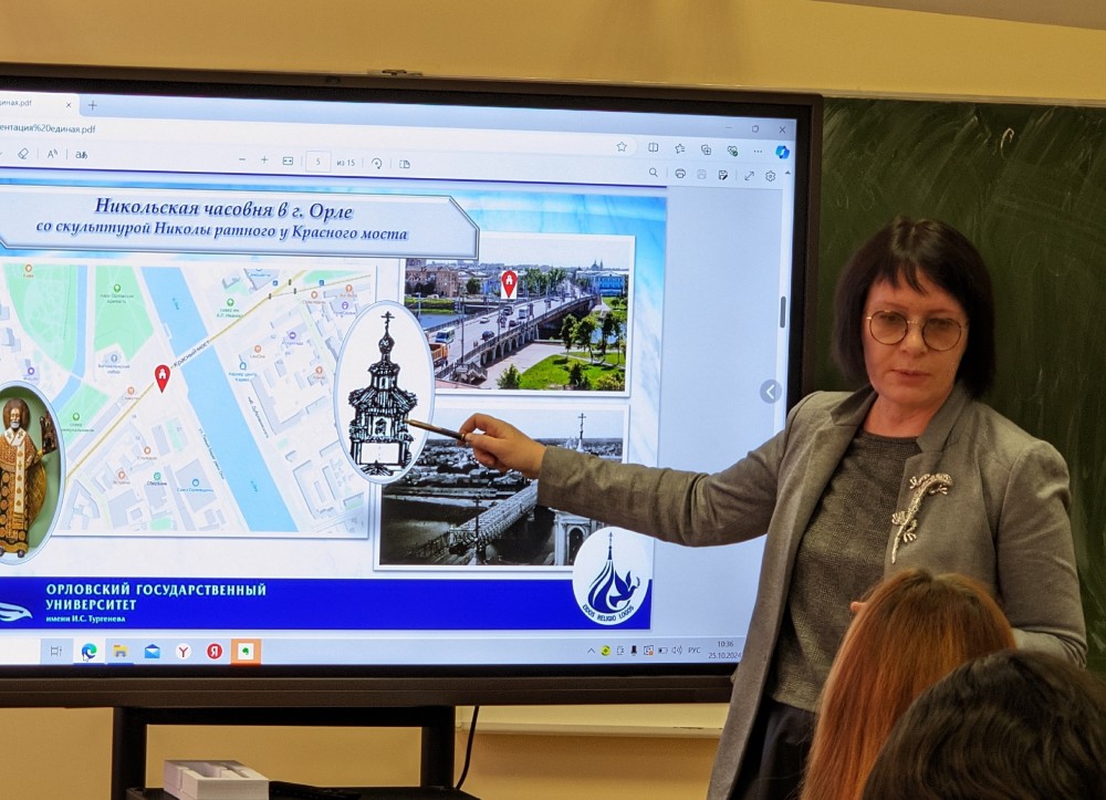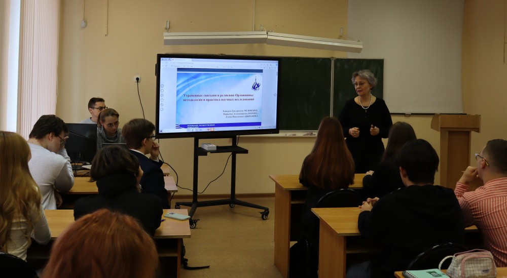 В рамках Всероссийского фестиваля «НАУКА 0+» преподаватели кафедры теологии, религиоведения и культурных аспектов национальной безопасности ОГУ имени И.С. Тургенева провели для учащихся гимназии № 1 университета лекцию-презентацию «Утраченные святыни и реликвии Орловщины: методология и практика научных исследований».