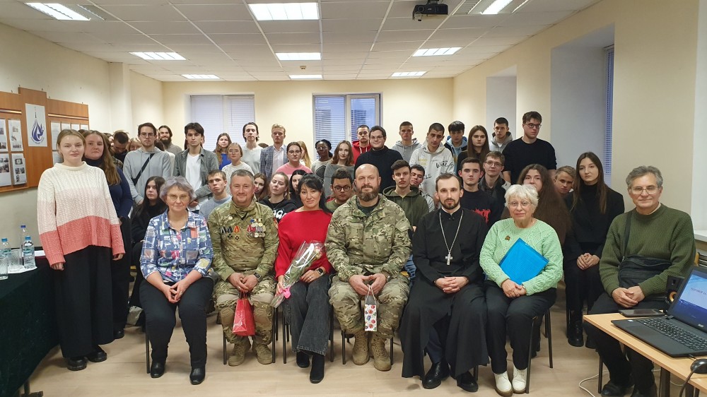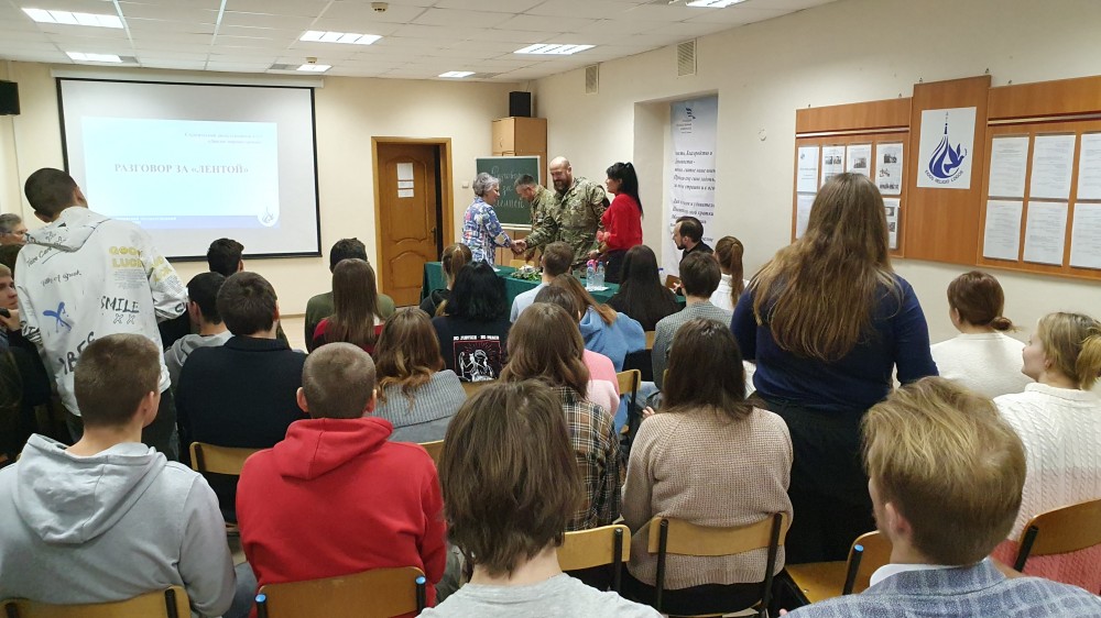 Заседание клуба проходило в формате беседы. Основное внимание было сосредоточено на причинах и мотивах жизненного выбора бойцов, ведь они добровольцами пошли защищать Донбасс. Без пафосных слов они говорили о любви к Родине, совести, благородстве, достоинстве, других чертах характера своих сослуживцев. Следование этим идеалам стало единственным способом сохранить свою человечность в условиях боевых действий, потому что война, по словам «Стрижа» и «Бороды», быстро обнажает все качества человека, показывая его реальную «стоимость». Отвечая на вопросы не только ребят, но и преподавателей, было сказано немало и о ценности религиозной веры. «На войне неверующих не бывает» - эту истину в очередной раз подтвердили бойцы СВО и на своем личном примере, и рассказывая о товарищах, среди которых были и православные, и мусульмане, и атеисты, в трудную минуту обращавшиеся к Богу.