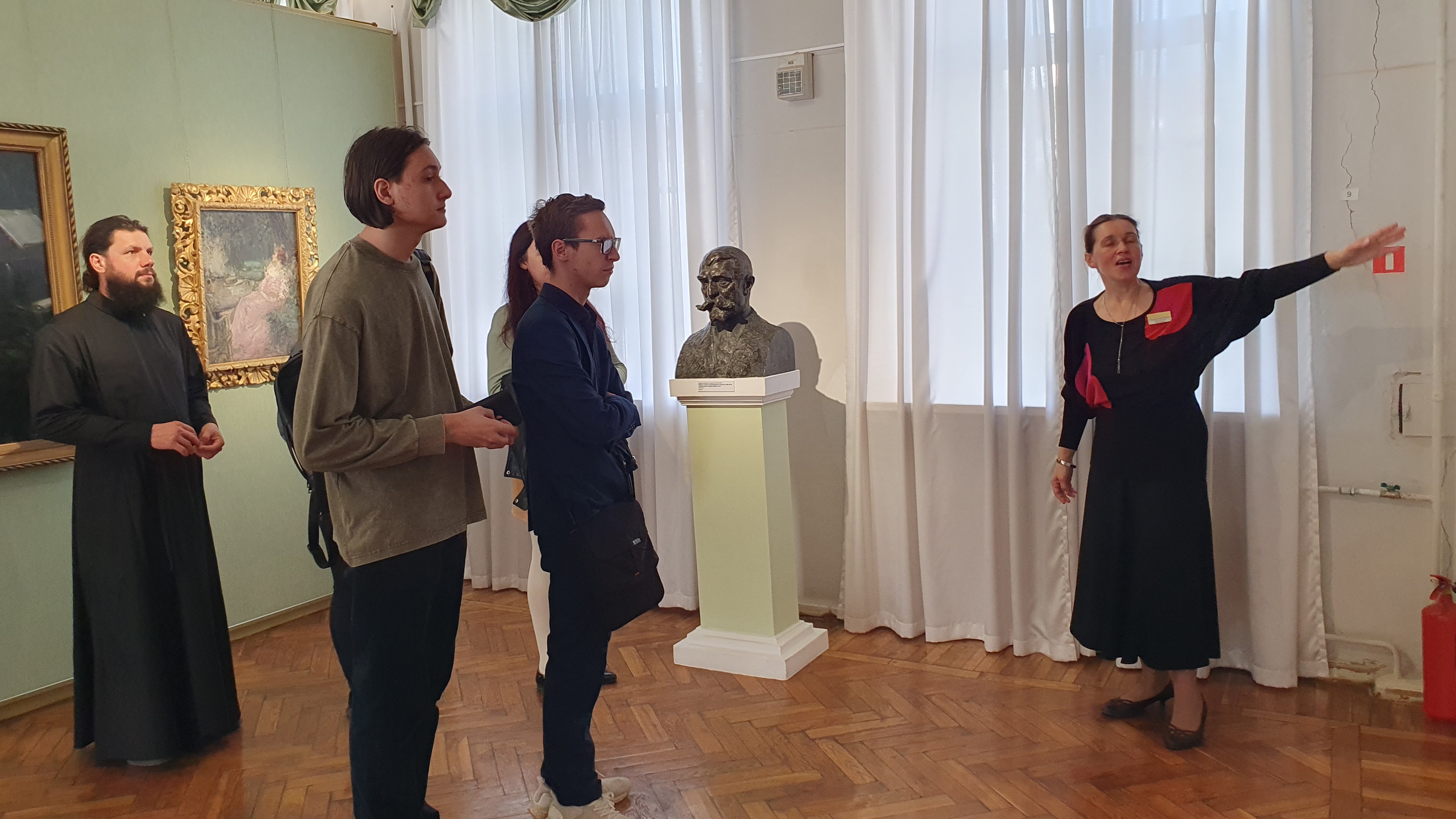 Заключительным событием проектной недели стало посещение 15 сентября Орловского музея изобразительных искусств, где старший научный сотрудник музея, канд. искусствоведения Лазарева Т.В. провела для будущих теологов интерактивную лекцию «Русский иконостас» с выходом в зал русской иконы XVII – XIX вв. Студенты узнали об истории возникновения русского иконостаса, влиянии римской и византийской монументальных традиций на становление его особенностей. Особое внимание было уделено Феофану Греку, создавшему первый в России многоярусный иконостас для Благовещенского собора Московского Кремля. В экспозиции студенты увидели иконы-подлинники и попробовали сами определить место их возможного размещения в алтарной преграде русского храма.