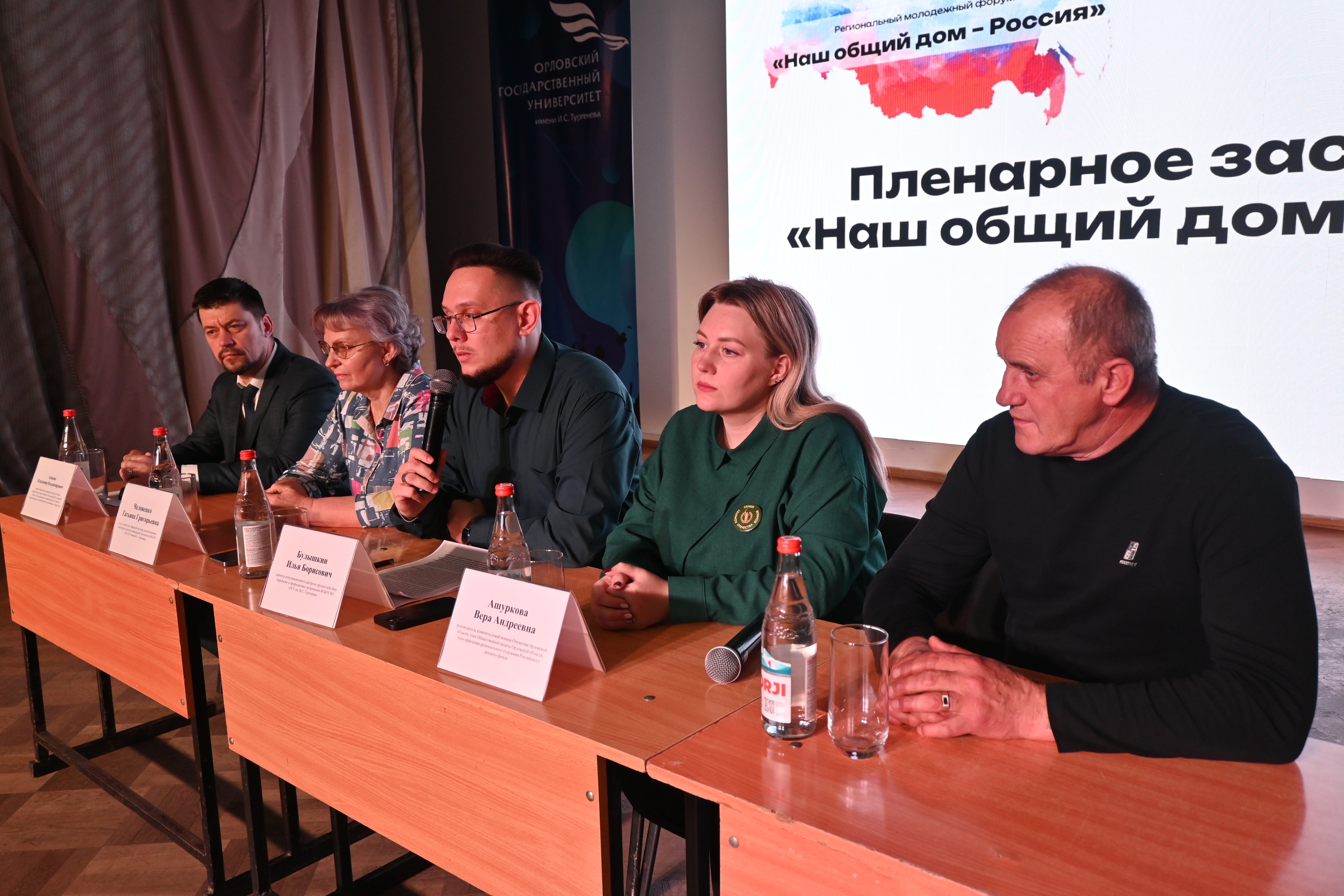 30 октября 2025 г. в преддверии Дня народного единства преподаватели и студенты кафедры теологии, религиоведения и культурных аспектов национальной безопасности приняли участие в работе Регионального молодежного форума «Наш общий дом – Россия», организованного Координационным центром по противодействию терроризму и профилактике экстремизма ОГУ имени И.С. Тургенева при поддержке Антитеррористической комиссии в Орловской области. К работе Форума присоединились студенты и преподаватели ОГУ имени И.С. Тургенева, Орловского юридического института МВД РФ им. В.В. Лукьянова, РАНХиГС, ОГАУ им. Н.В. Парахина, Мезенского педагогического колледжа, Орловского базового медицинского колледжа, Орловского техникума путей сообщения им. Лапочкина, Орловского автодорожного техникума, а также представители региональных органов исполнительной власти и общественных организаций.