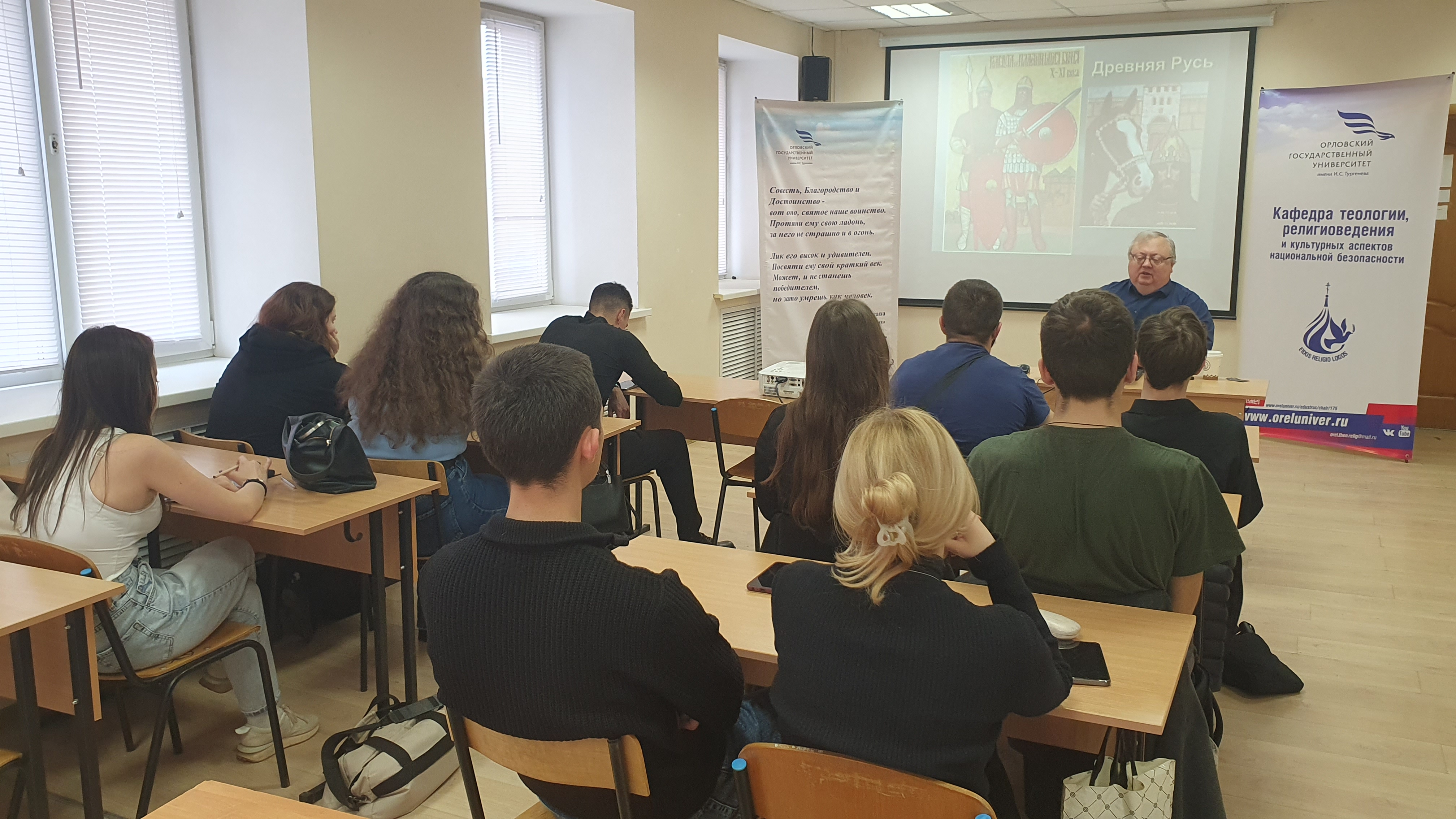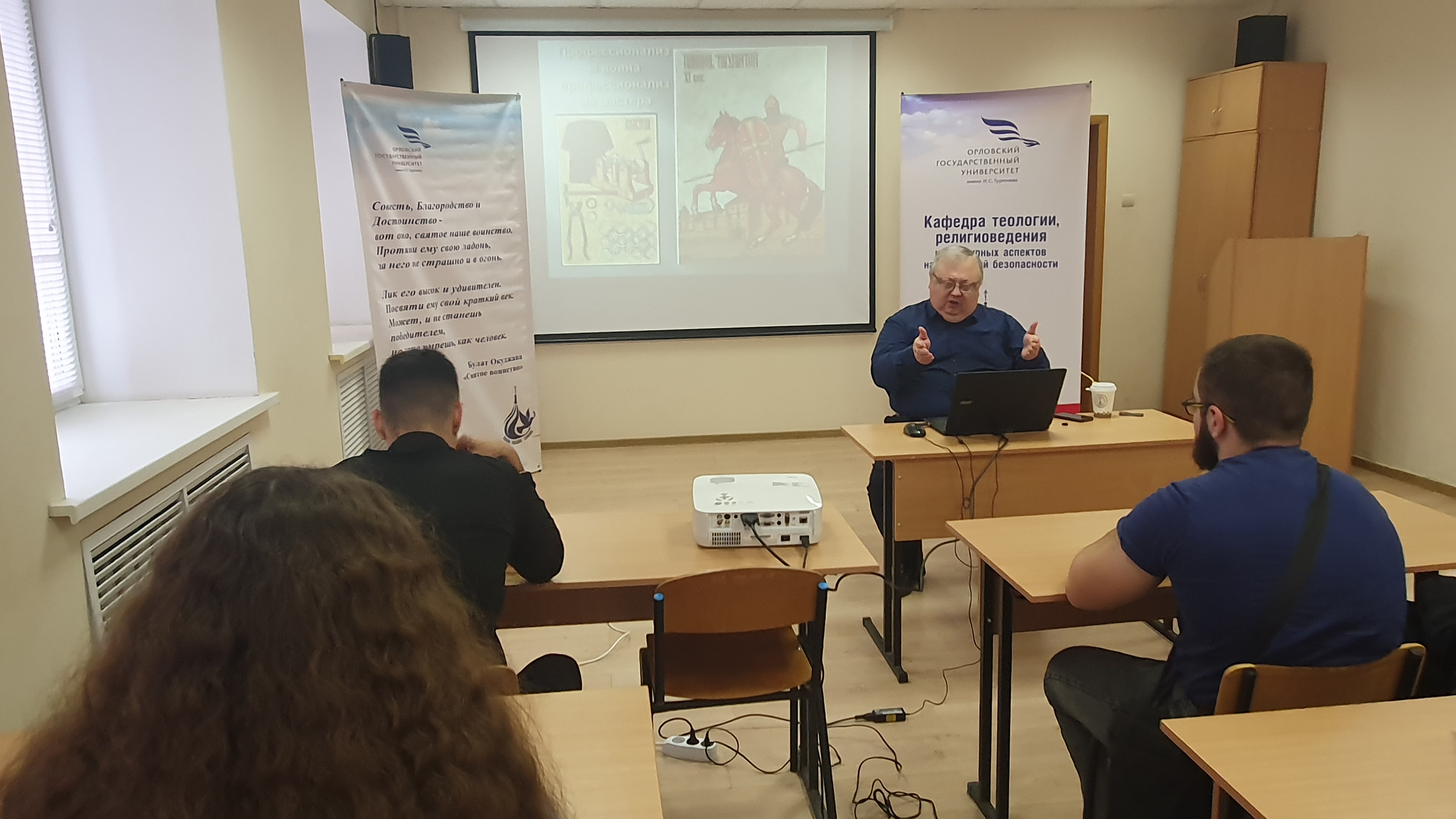 14 ноября 2025 г. профессор кафедры теологии, религиоведения и культурных аспектов национальной безопасности ОГУ имени И.С. Тургенева Савосичев А.Ю. провел для студентов-теологов интерактивную лекцию «Духовные традиции русского воинства XV-XVII вв.» в рамках университетского плана мероприятий в честь Года защитника Отечества.