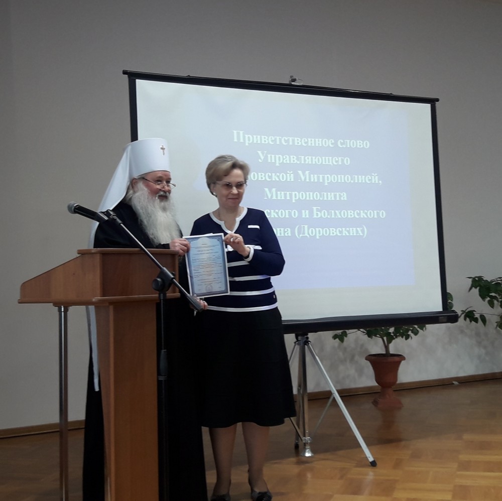 7 декабря 2019 г. в Орловском государственном университете им. И.С. Тургенева состоялось знаковое событие: вручение свидетельства о церковной аккредитации. Во время пленарного заседания регионального этапа XXVIII Международных Рождественских образовательных Чтений «Великая Победа: наследие и наследники» Митрополит Орловский и Болховский Тихон от лица Учебного Комитета РПЦ вручил его зав. кафедрой теологии, религиоведения и культурных аспектов национальной безопасности Человенко Т.Г., стоявшей в основании теологического образования в регионе. Наш вуз стал четвертым светским учебным заведением, наряду с Рязанским, Псковским и Тульским государственными университетами, получившим такой статус.