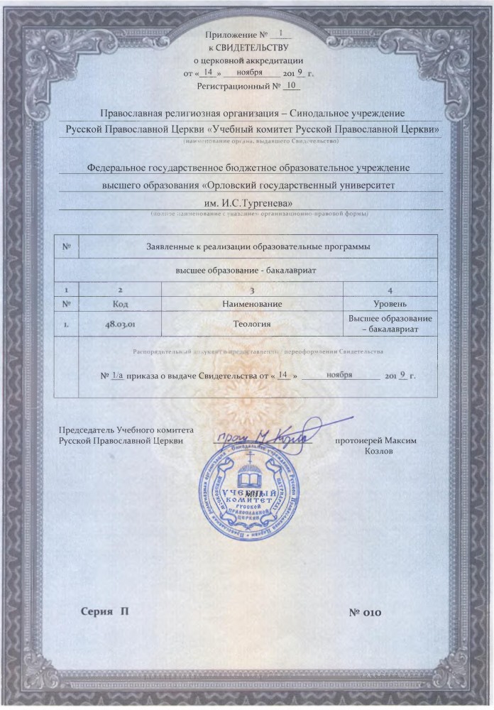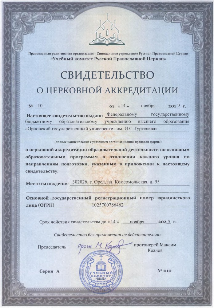 Церковная аккредитация ОГУ им. И.С. Тургенева: