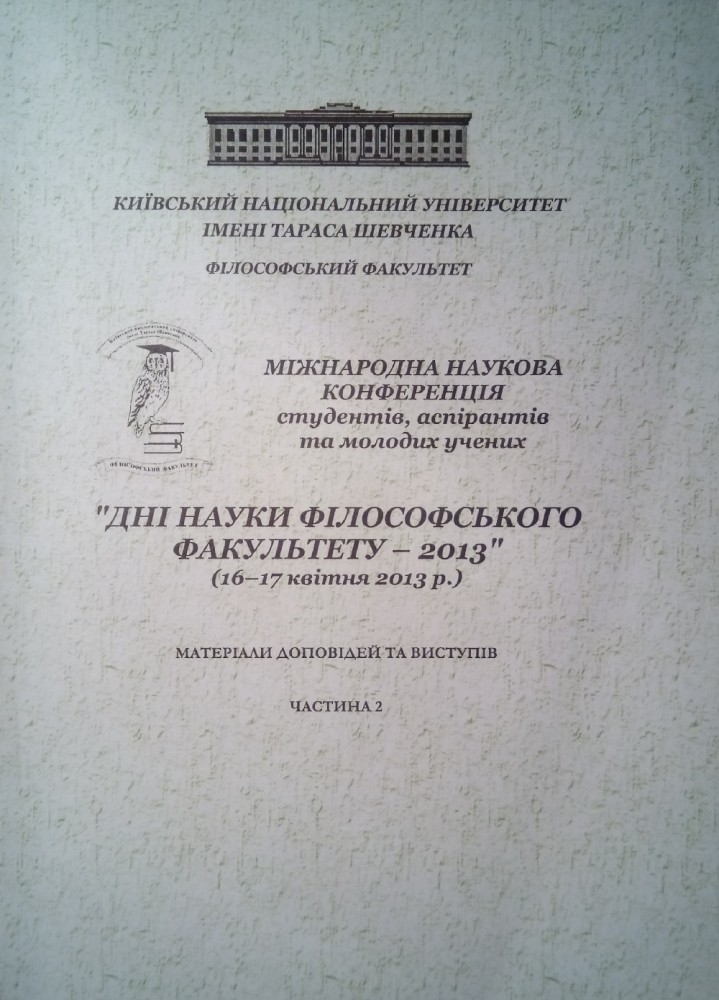 16-17 апреля 2013 г. студенты и преподаватели кафедры участвовали в Международной научной конференции студентов, аспирантов и молодых учёных, "Дни науки философского факультета - 2013", проходившей на базе Киевского национального университета имени Тараса Шевченко в Киеве. По итогам конференции был выпущен сборник статей и тезисов участников.