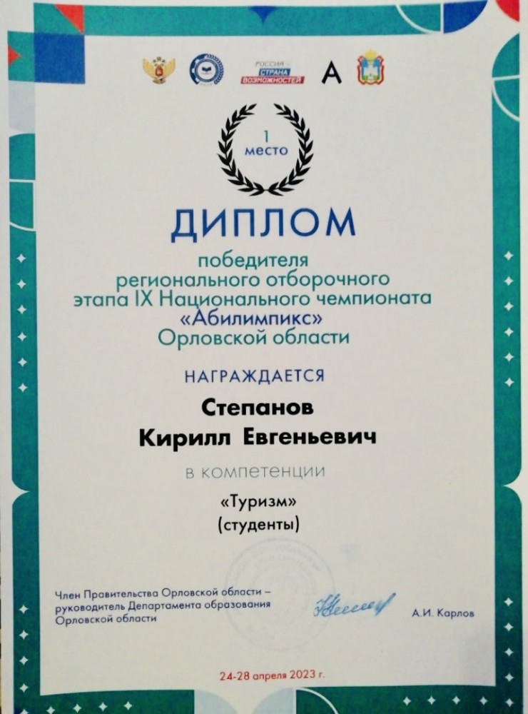 По результатам регионального чемпионата «Абилимпикс» Кирилл Степанов занял 1 место в компетенции «Туризм». Поздравляем! Желаем побед в будущем!